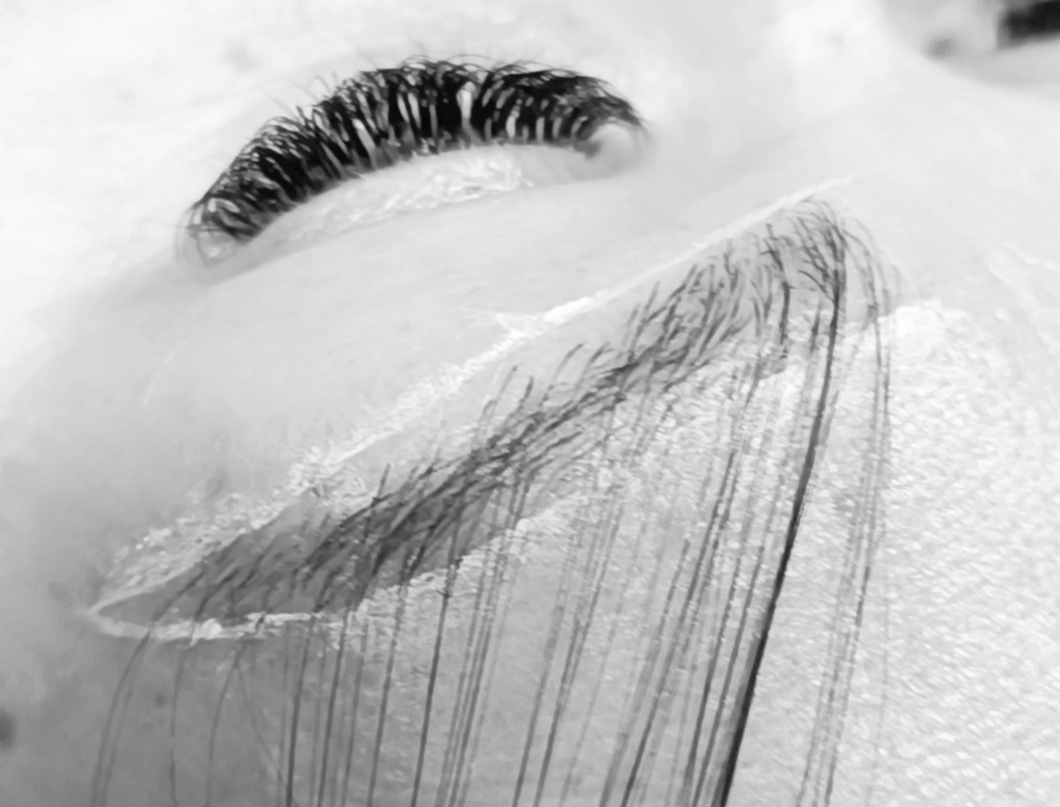 Technika lepení jednotlivých pravých vlasů na chloupky obočí, za pomocí speciálního lepidla.